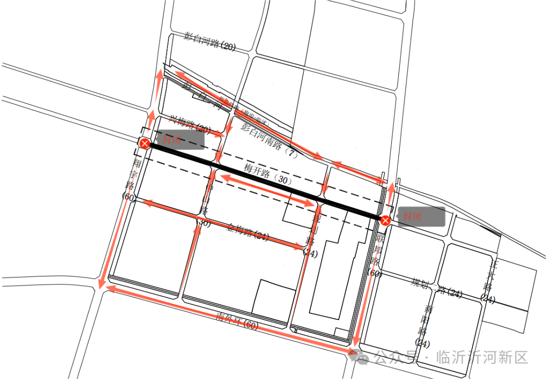臨沂沂河新區(qū)規(guī)劃建設局發(fā)布關于梅開路(翔宇路-聯(lián)邦路)道路施工的公告因臨沂沂河新區(qū)循環(huán)經濟產業(yè)園基礎設施建設工程施工,為確保道路交通安全和施工順利進行,根據《中華人民共和國道路交通安全法》等相關法律的